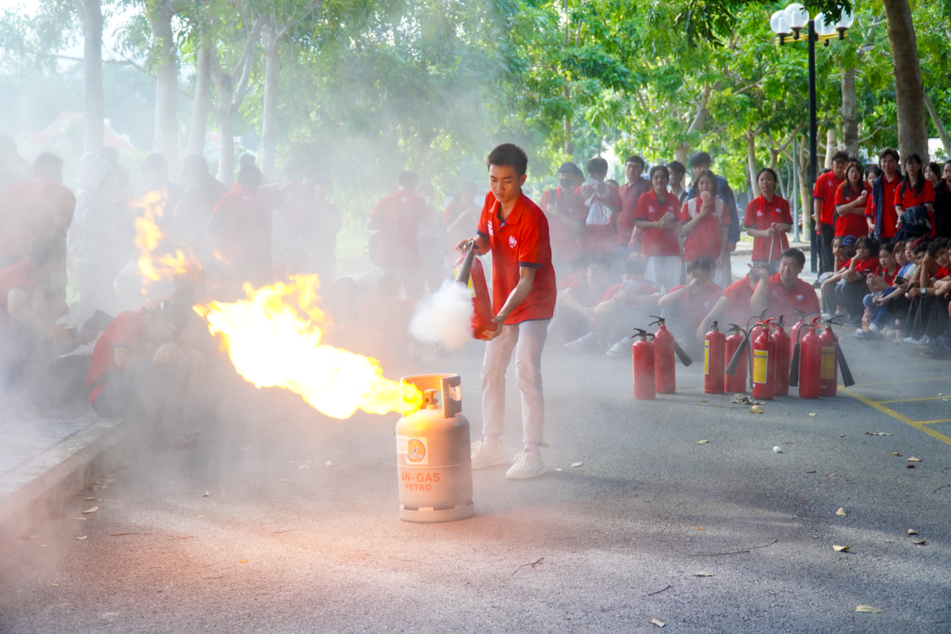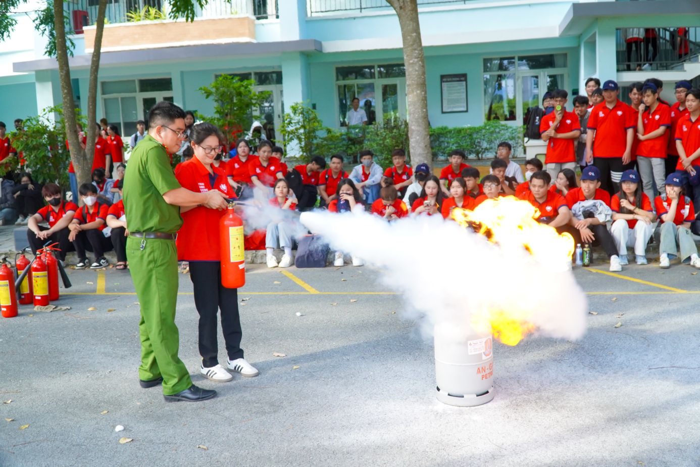 Tại chương trình, các bạn sinh viên đã được đại diện Phòng Cảnh sát PCCC&CNCH thông báo về tình hình cháy, nổ trong nước và quốc tế trong thời gian qua, đặc biệt là các vụ cháy điển hình xảy ra tại các cơ sở giáo dục, trường học; phổ biến văn bản quy phạm pháp luật về PCCC và CNCH; khuyến cáo các nguy cơ xảy ra cháy, nổ và hướng dẫn quy trình tổ chức, cứu chữa một vụ cháy; kỹ năng thoát nạn khi có cháy, nổ xảy ra.
