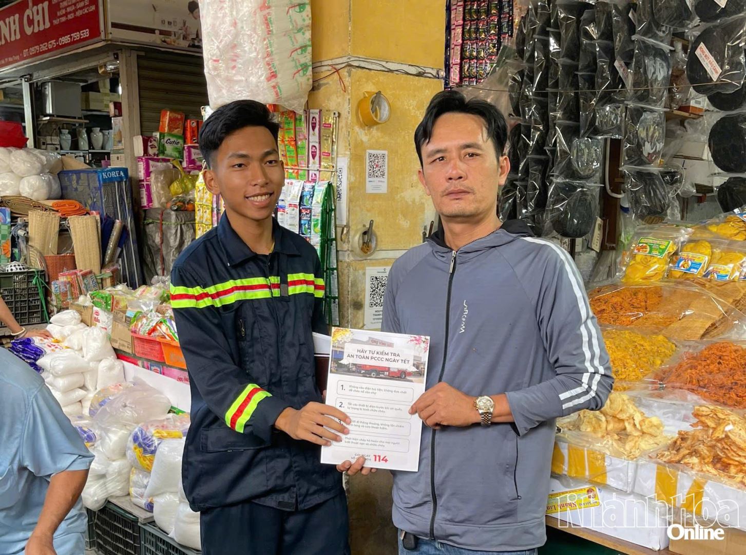 Chợ Vĩnh Hải với hàng trăm lô sạp là nơi tập trung đông tiểu thương kinh doanh quần áo, giày dép, hàng khô, hải sản... Vào dịp Tết, lượng người mua sắm tăng cao, kéo theo nguy cơ cháy nổ từ việc sử dụng điện, gas, sắp xếp hàng hóa... Tại buổi tuyên truyền, cán bộ Đội Chữa cháy và CNCH khu vực 9 đã phổ biến cho Ban Quản lý chợ, các đội viên đội phòng cháy, chữa cháy cơ sở và tiểu thương các nội dung gồm: Kiểm tra, bảo dưỡng thiết bị điện; sắp xếp hàng hóa đảm bảo lối thoát nạn; sử dụng bình chữa cháy xách tay; xử lý ban đầu khi xảy ra sự cố cháy nổ; kỹ năng CNCH cơ bản. Đồng thời, phát tờ rơi tuyên truyền các quy định của pháp luật liên quan đến phòng cháy, chữa cháy, các nguy cơ cháy nổ thường gặp dịp Tết, số điện thoại đường dây nóng 114.