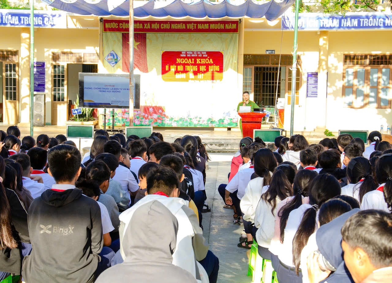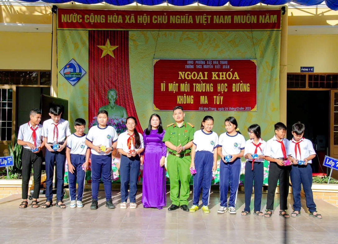 Sáng ngày 27/10/2025, Phòng Cảnh sát điều tra tội phạm về ma tuý - Công an Tỉnh Khánh Hoà phối hợp cùng Trường THCS Nguyễn Viết Xuân tổ chức tuyên truyền phòng, chống tác hại của thuốc lá điện tử,ma tuý và tìm hiểu Luật phòng chống ma tuý cho hơn 998 học sinh và giáo viên nhà trường.