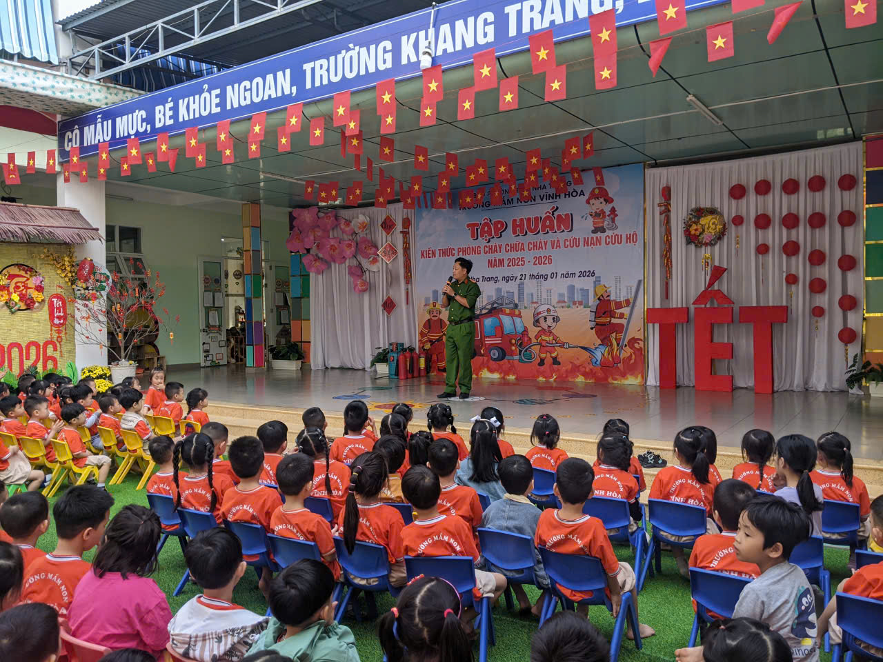 Sáng 21/1, Đội Chữa cháy và CNCH khu vực 1 - Phòng Cảnh sát PCCC và CNCH Công an tỉnh phối hợp Trường Mầm non Vĩnh Hòa (phường Bắc Nha Trang) tổ chức chương trình “Tuyên truyền, trải nghiệm, thực hành chữa cháy và cứu nạn, cứu hộ" năm 2026 với sự tham gia của 200 học sinh và giáo viên nhà trường.