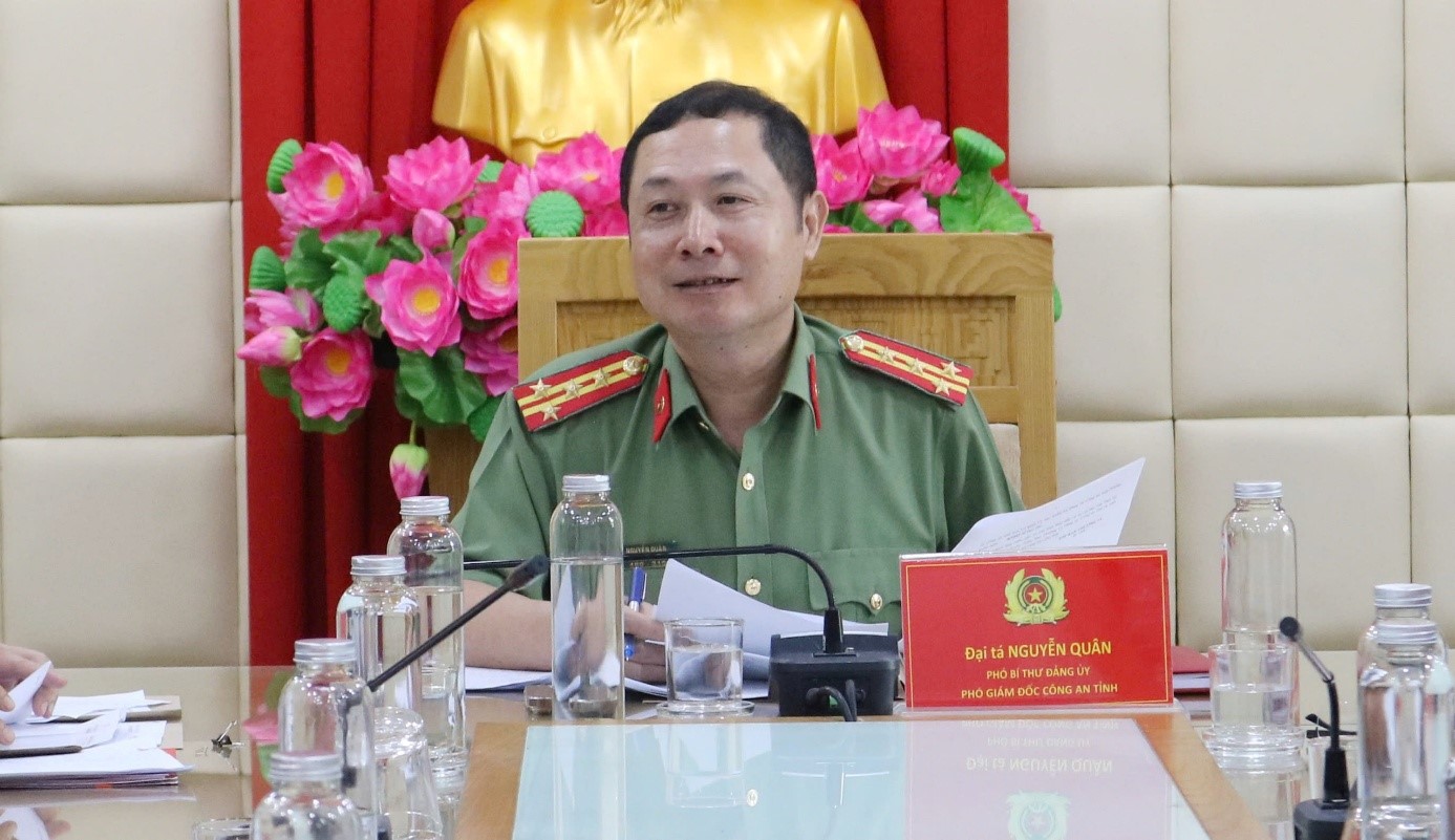 Đồng chí Đại tá Nguyễn Quân - Phó Bí thư Đảng ủy, Chủ nhiệm UBKT Đảng ủy, Phó Giám đốc Công an tỉnh phát biểu chỉ đạo
