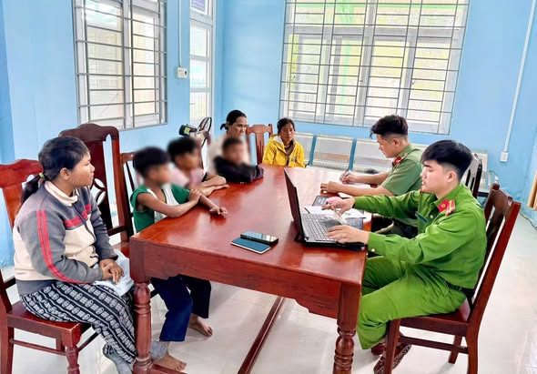 Công an xã làm việc với gia đình và 3 em nhỏ