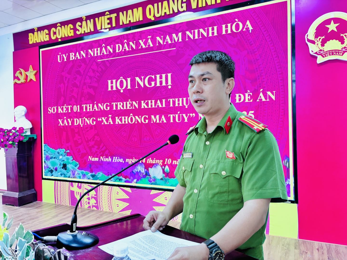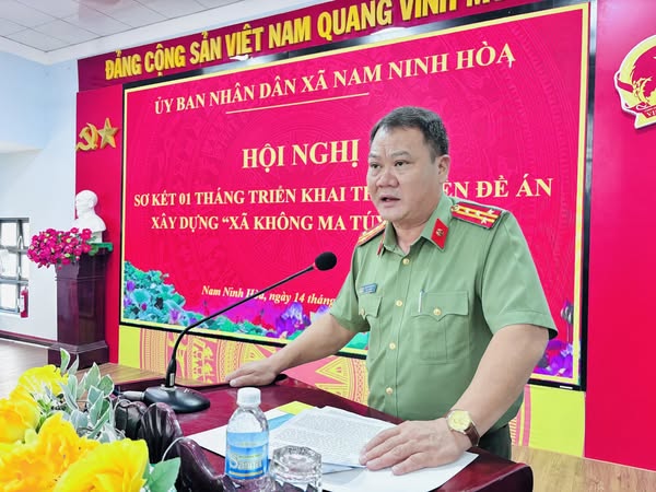 Ngày 14/10, UBND xã Nam Ninh Hòa tổ chức hội nghị sơ kết một tháng triển khai thực hiện đề án xây dựng “xã không ma túy” năm 2025. Đại tá Nguyễn Mậu An, Phó Giám đốc Công an tỉnh dự và phát biểu chỉ đạo tại hội nghị.