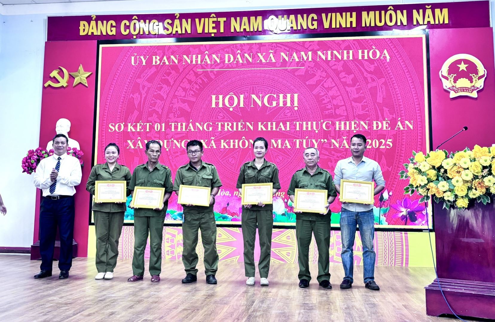 Dịp này, Chủ tịch UBND xã Nam Ninh Hòa đã tặng giấy khen cho một tập thể và 6 cá nhân có thành tích xuất sắc qua một tháng thực hiện cao điểm đấu tranh trấn áp tội phạm.