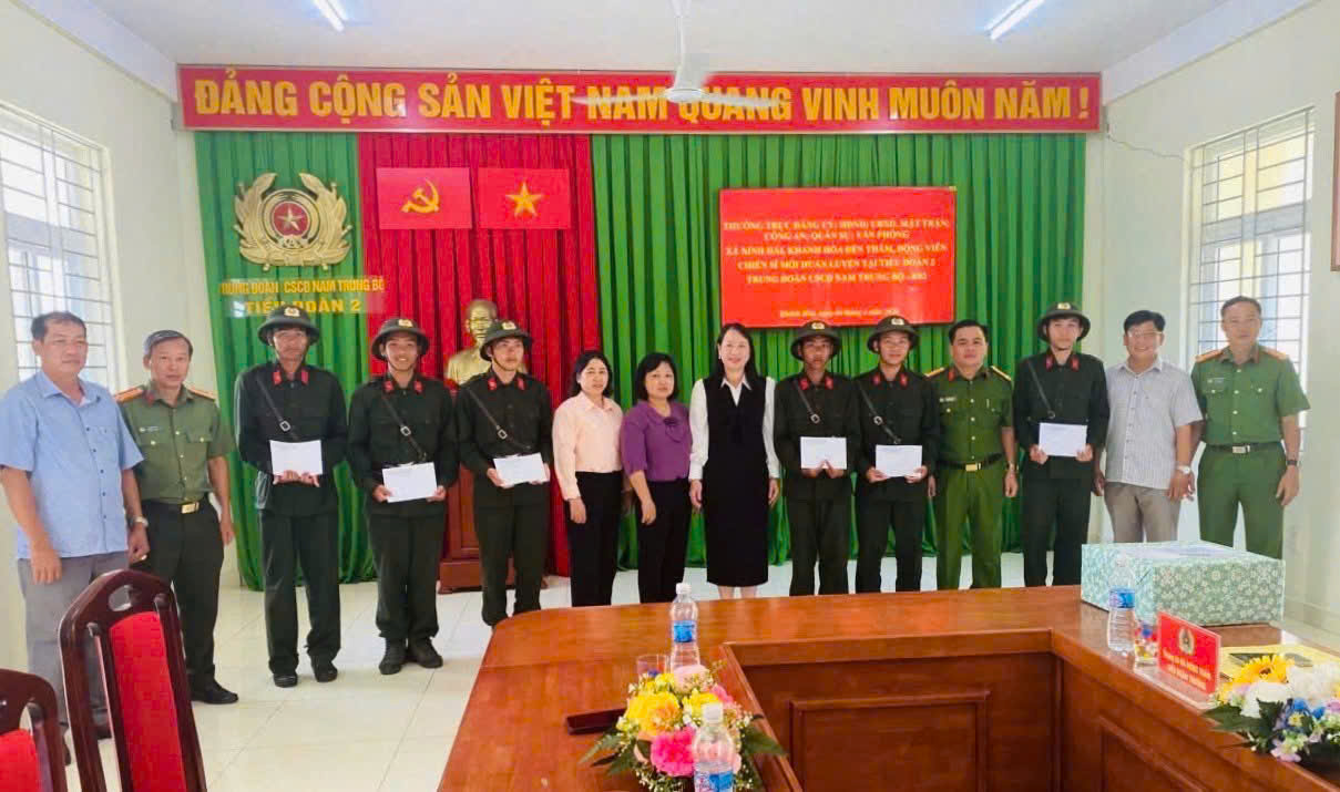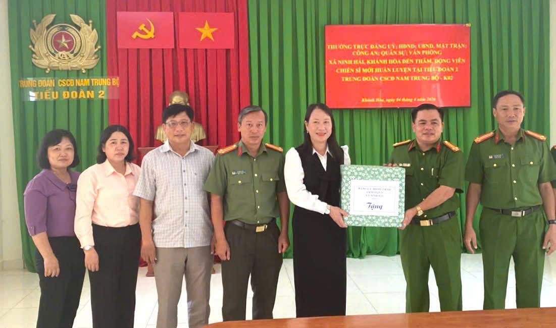 Nhằm thể hiện sự quan tâm sâu sắc của cấp ủy Đảng, chính quyền địa phương và lực lượng Công an xã đối với công dân thực hiện nghĩa vụ tham gia Công an nhân dân, ngày 07/4/2026 lãnh đạo Đảng ủy, UBND và Công an xã Ninh Hải đã tổ chức đoàn công tác đến thăm, động viên các chiến sĩ thực hiện nghĩa vụ tham gia Công an nhân dân năm 2026 đang tham gia huấn luyện tại Trung đoàn Cảnh sát cơ động Tây Nguyên và Tiểu đoàn 2, Trung đoàn Cảnh sát cơ động Nam Trung Bộ.