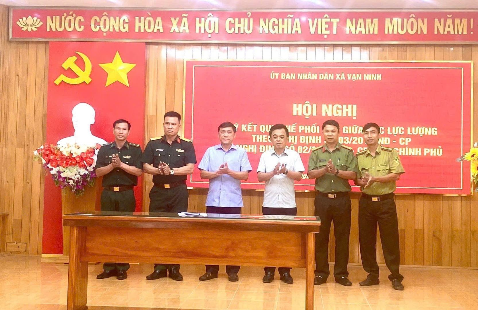 Lãnh đạo Đảng ủy, Ủy ban nhân dân xã và Đại diện Ban Chỉ huy Quân sự xã, Công an xã, Đồn Biên phòng Vạn Hưng và Hạt Kiểm lâm Vạn Ninh ký kết quy chế phối hợp