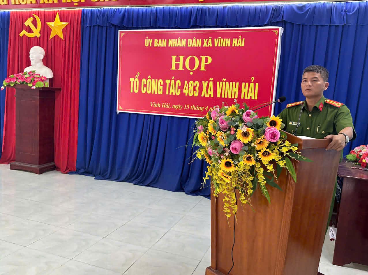 Tại buổi lễ, ban tổ chức đã công bố nội dung Quyết định thành lập Tổ công tác 483 xã Vĩnh Hải. Tổ công tác do đồng chí Chủ tịch UBND xã làm Tổ trưởng, đồng chí Trưởng Công an xã làm Tổ phó thường trực, các lực lượng nòng cốt từ chính quyền, đoàn thể đến cơ sở là thành viên. Đây là lực lượng liên ngành có nhiệm vụ rà soát, phát hiện, quản lý chặt chẽ người nghiện, người sử dụng trái phép chất ma túy và người sau cai nghiện; đồng thời đẩy mạnh tuyên truyền, huy động Nhân dân tham gia phòng, chống ma túy.