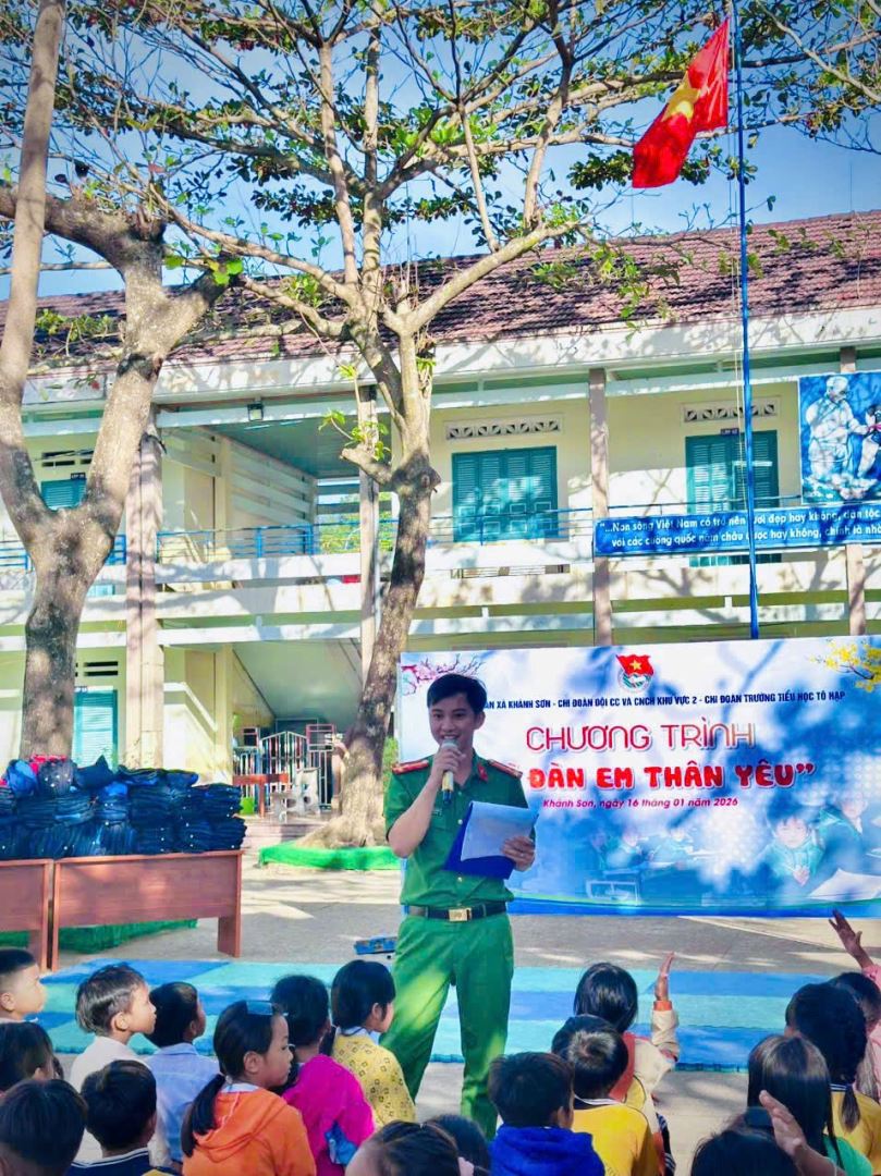 Chiều ngày 16/01/2026, tại điểm trường chính Trường Tiểu học Tô Hạp, Chi đoàn Đội Chữa cháy và Cứu nạn, cứu hộ khu vực 2 phối hợp với Chi đoàn Công an xã Khánh Sơn và Chi đoàn Trường Tiểu học Tô Hạp tổ chức chương trình tình nguyện “Vì đàn em thân yêu”, hướng tới các em học sinh có hoàn cảnh khó khăn tại điểm trường Tà Lương và Dốc Gạo, xã Khánh Sơn.