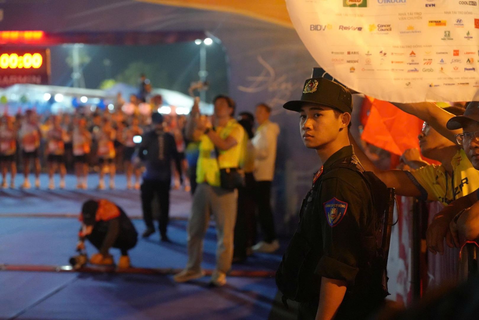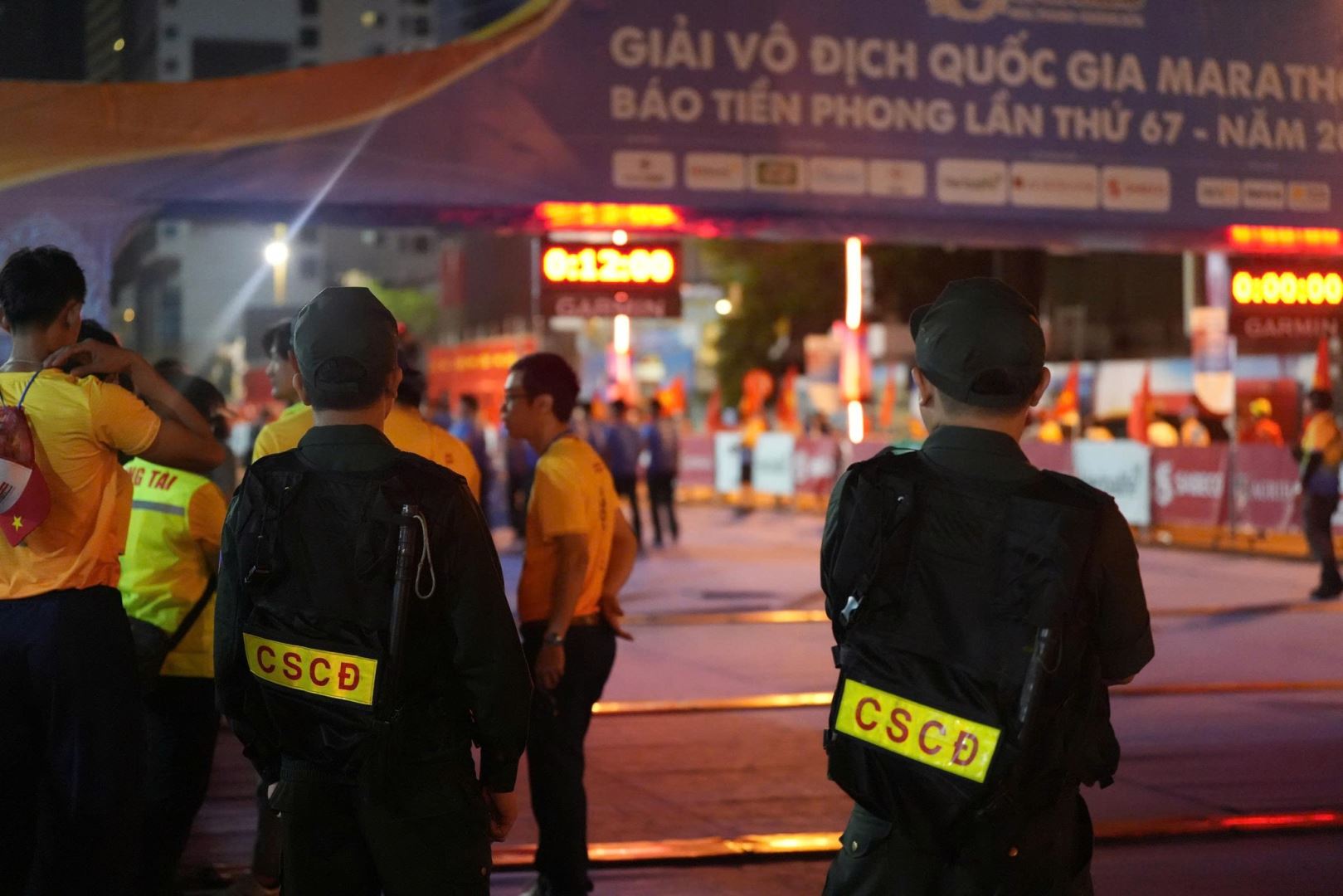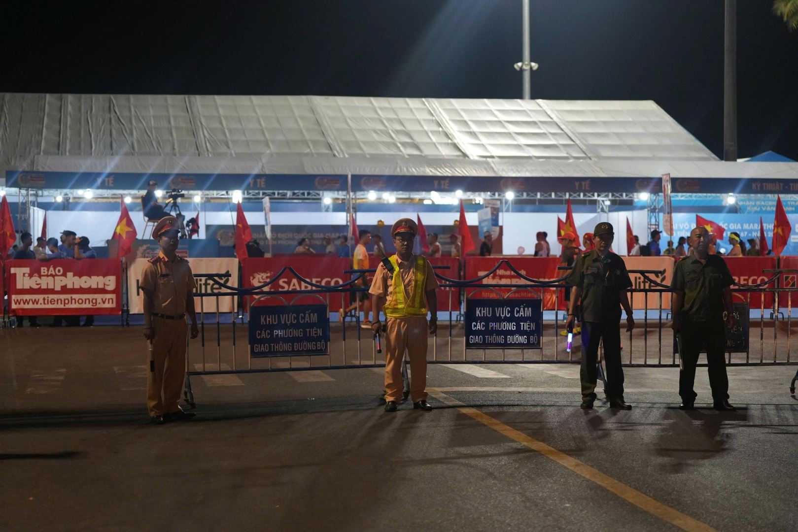 Lực lượng an ninh làm nhiệm vụ tại khu vực gần vạch xuất phát.